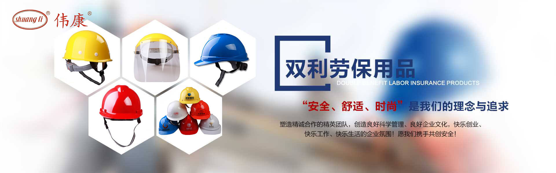 專業(yè)的安全帽生產廠家-鎮江市雙利勞保用品有限公司。雙利公司坐落于美麗富饒、景色怡人的蘇南名城——江蘇省鎮江市丹陽,地理位置優(yōu)越、世界第三長河——長江、滬寧高速、滬寧高鐵、312國道穿境而過,交通便利,環(huán)境怡人。鎮江市雙利勞保用品有限公司是鎮江市第一家創(chuàng)辦的專業(yè)生產安全帽的生產商,并申請擁有自己的品牌:shuangli牌和偉康牌,立足致力于安全帽研究,從原料入手研發(fā)出韌性更強、抗沖力更高的特點。公司根據實際運行需要建立高效、務實、有序的組織機構,實現現代化公司管理。同時公司具備專業(yè)完善的生產設備和成熟的安全帽生產工藝及先進的檢測儀器,為產品的質量奠定了堅實的基礎,各項技術指標均達到國家《GB2811-2019》《安全帽》標準。產品廣泛適用于建筑、林業(yè)、石油、石化、造船、港口、冶金等行業(yè)。 “安全、舒適、時尚”是我們的理念與追求,塑造精誠合作的精英團隊,創(chuàng)造科學管理、良好的企業(yè)文化,快樂創(chuàng)業(yè)、快樂工作、快樂生活的企業(yè)氛圍!愿我們攜手共創(chuàng)安全!